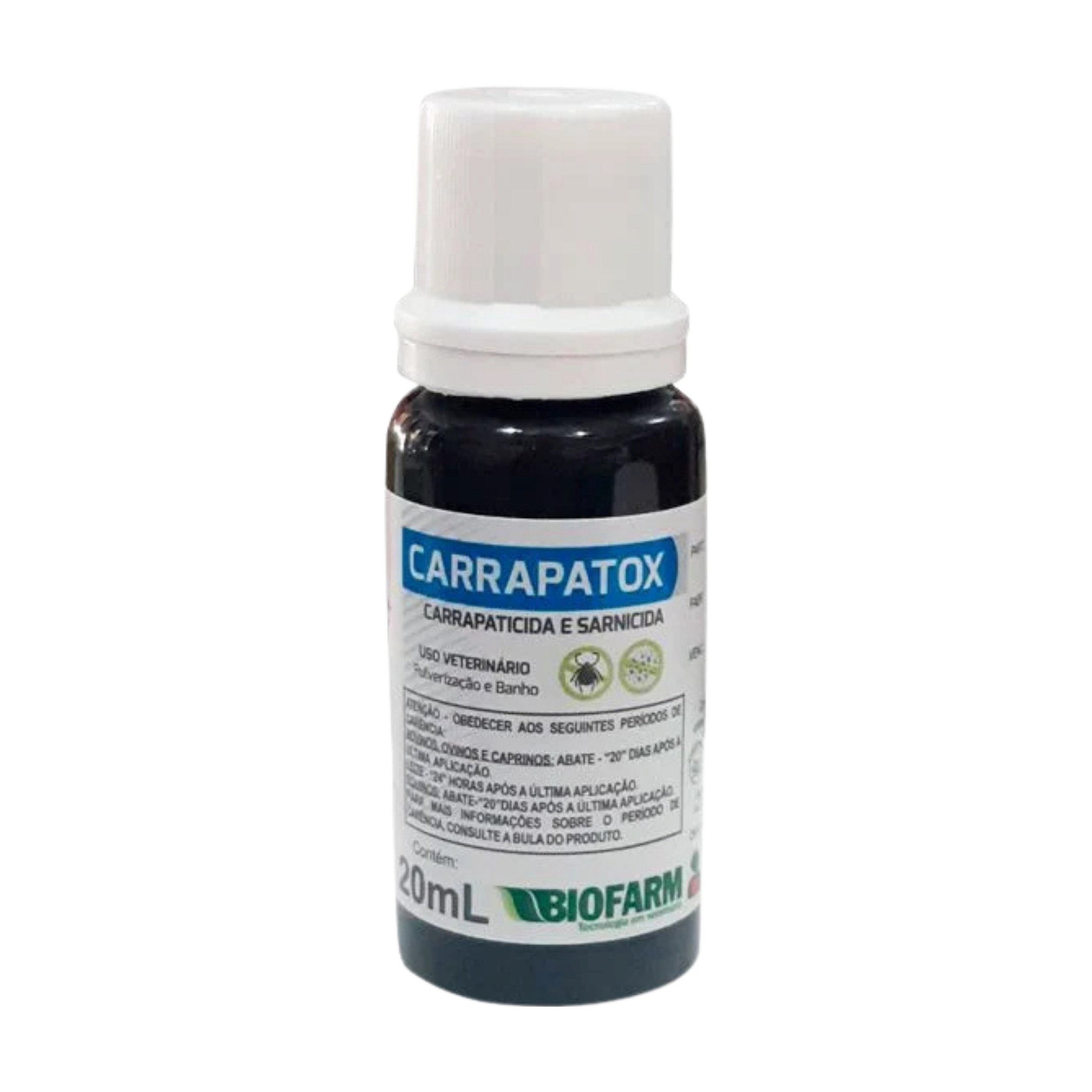 Equinos, ovinos e caprinos - diluir 20 mL de Carrapatox para 20 litros de água, ou 1 litro do produto para 1000 litros de água (1:1000).