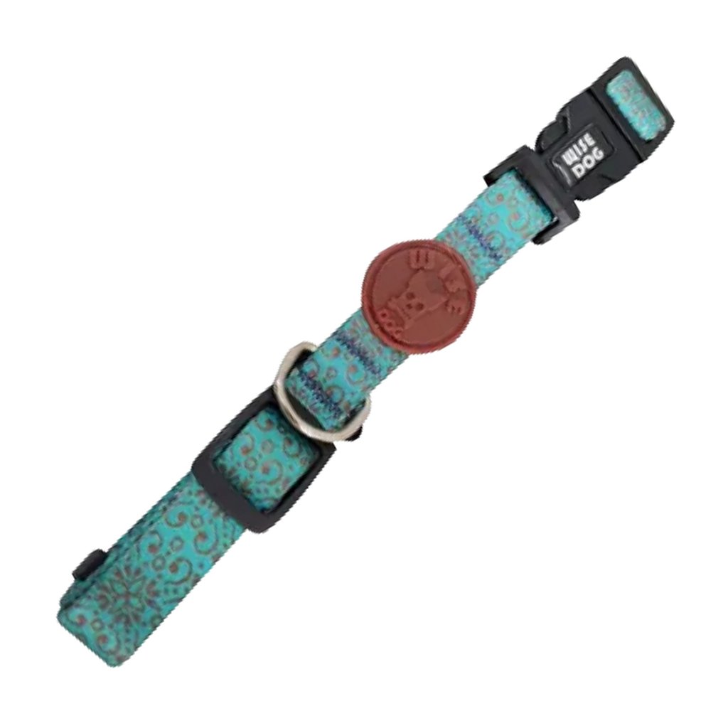 Coleira Tradicional Tamanho P Verde Água Com Estampa - Wise Dog