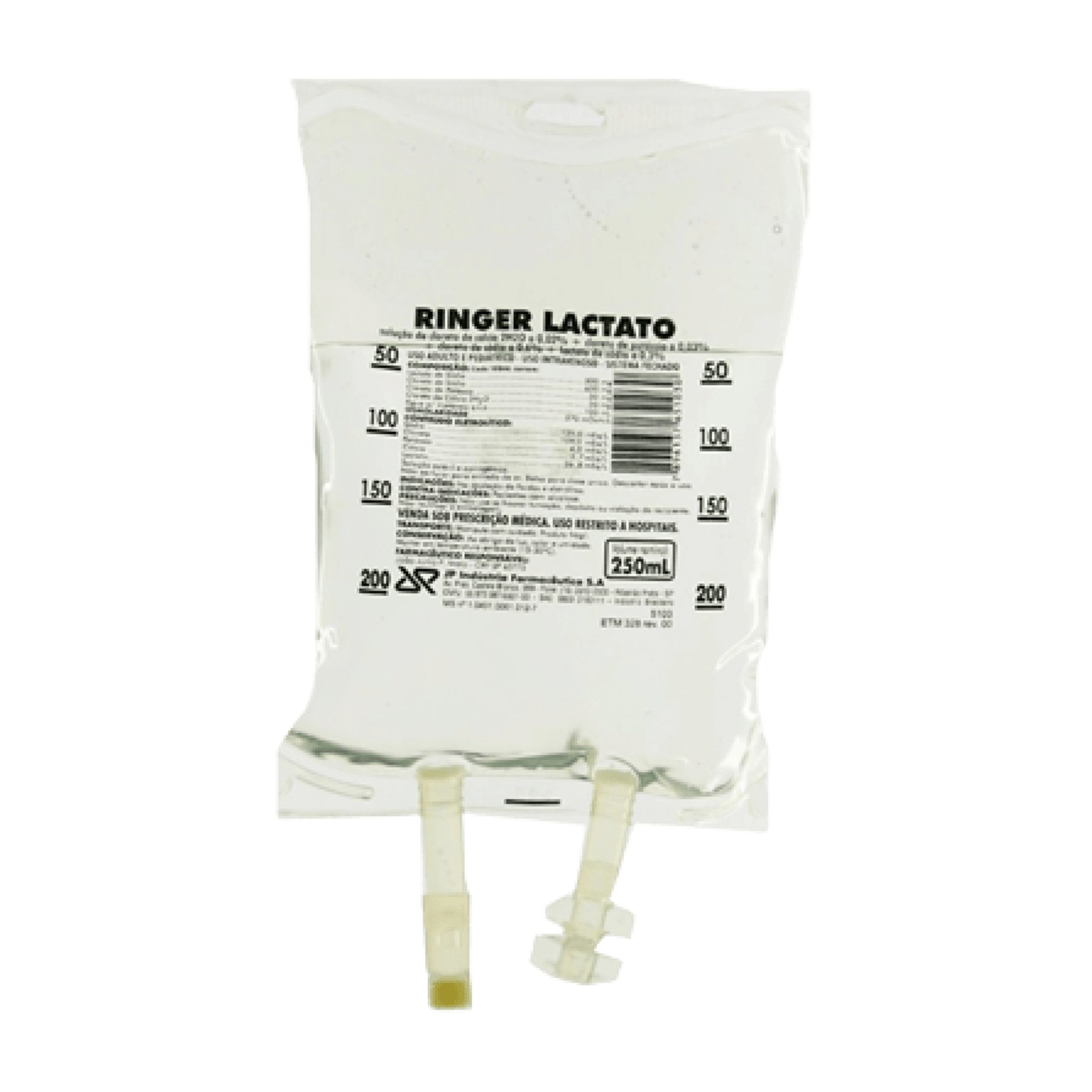 Solução injetável de cloreto de sódio + cloreto de potássio + cloreto de cálcio + lactato de sódio.