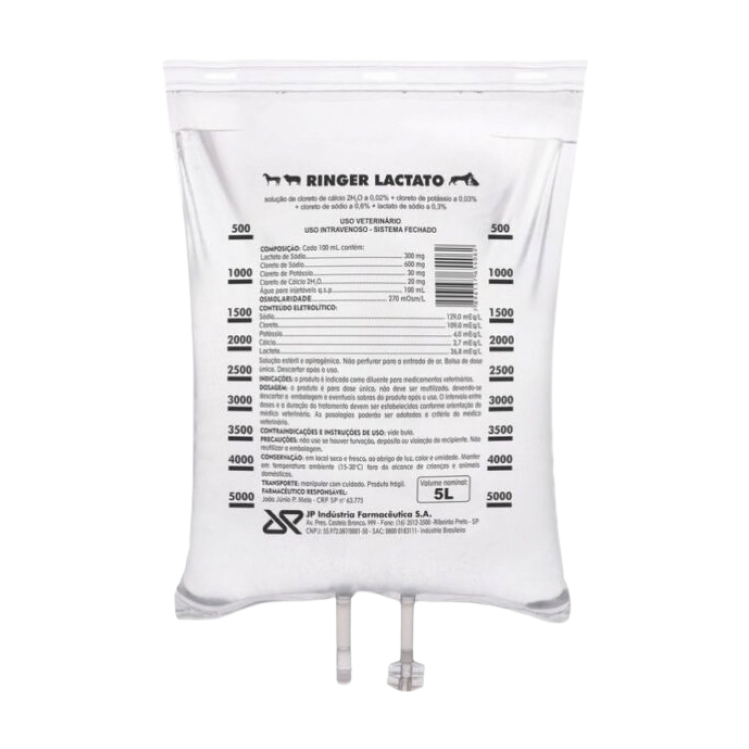 Solução injetável de cloreto de sódio + cloreto de potássio + cloreto de cálcio + lactato de sódio.